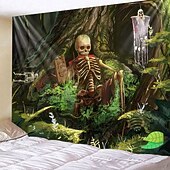 HOT ! Halloween Decorations Tapestry Skeleton Wall Art Large Hanging Tapestry Mural Decor Photograph Backdrop Blanket Curtain Home Bedroom Living Room Graveyard