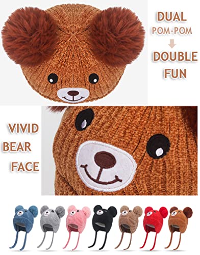 Cute Kids Winter Hat with Ear Flap 1-5 Years Dual Pom Knit Warm Hat for Baby Girls Boys Fleece Warm Earflap Beanie Hat 5
