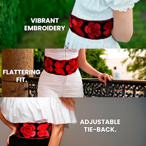 • MULTIFUNCTIONAL STYLING PIECE – Designed as a sash belt, it works beautifully with dresses, skirts, tops, and more. Use it as a mexican waist belt for a traditional touch or cinch your favorite outfit for a flattering silhouette. Its wide 10-inch design ensures a superb fit for both casual and elegant occasions.