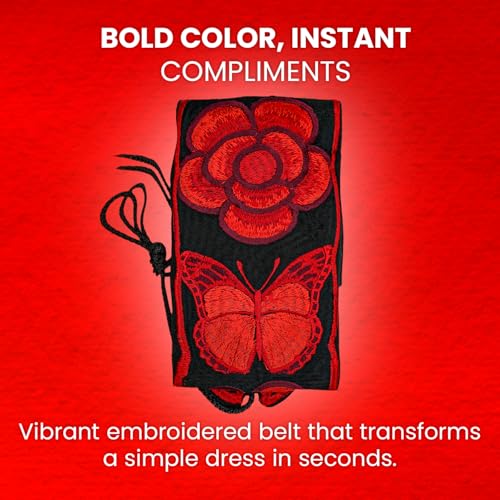 • VIBRANT FLORAL EMBROIDERY – Our mexican flower belt adds a bold and exquisite touch to any look. The vivid embroidery turns a easy dress into a statement of tradition and elegance. Whether you’re dressing for a fiesta, a casual event, or a wedding, this colorful mexican belt will enhance your figure and style effortlessly.