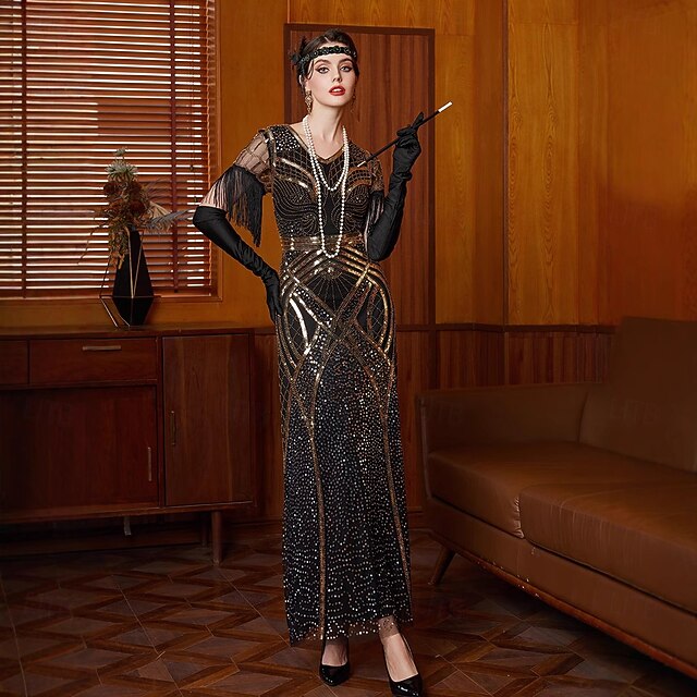 $71.99 - Retro Vintage Roaring 20s 1920s Ankle Length Flapper Dress Cocktail Dress Prom Dress The Great Gatsby Flapper Girl Sequins Fringe V Neck Fancy Dress Women's Christmas Halloween Carnival Wedding 2025. Shop for cheap Dresses online? Buy at lightinthebox.com on sale today!