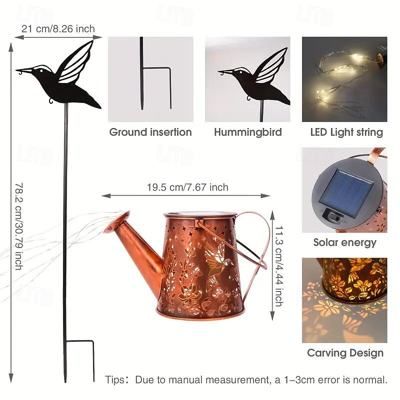 1pc Solar Bee Water Bottle Lamp – Iron Hummingbird Kettle Hanging Light, Waterproof Outdoor Lawn Lamp for Patio, Wedding, Camping and Party Decoration 11