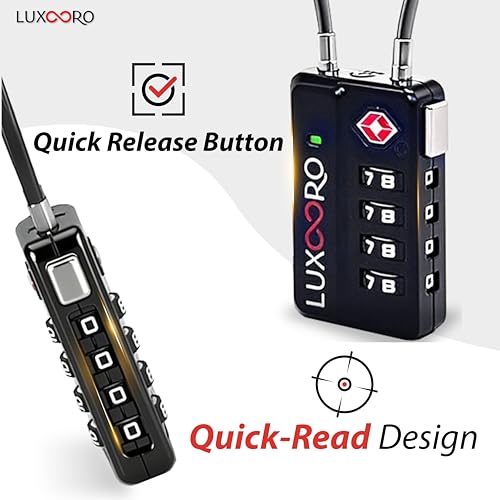 • ✈️Rugged & Durable locks: LUXOORO TSA-approved lock is expertly crafted from premium and heavy-duty zinc alloy and reinforced steel, engineered to resist hammering, cutting, and sawing attempts. Its rugged construction provides maximum protection against scratches, corrosion, and wear—making it ideal for both daily use and demanding travel conditions.
