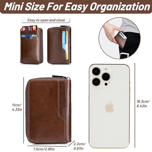 Genuine Leather Wallet for Men Bifold RFID Blocking Wallets with Zipper, Multi Card Holder Wallets Small Men's Leather Wallet (Brown) 6