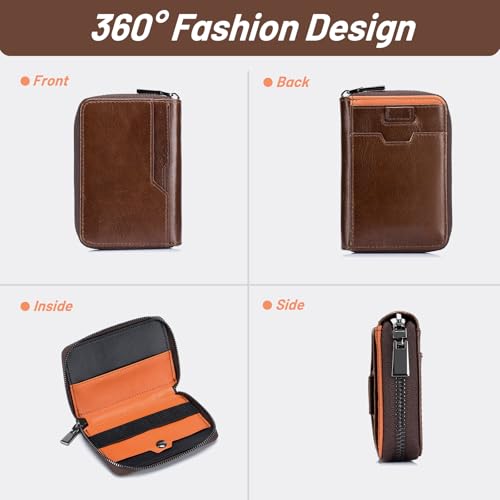 HOT ! Genuine Leather Wallet for Men Bifold RFID Blocking Wallets with Zipper, Multi Card Holder Wallets Small Men's Leather Wallet (Brown)
