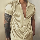 More information about Men's Shirt Summer Shirt Casual Shirt Button Up Shirt Black Gold Short Sleeve Plain Lapel Vacation Daily Clothing Apparel Polyester Fashion Designer Casual