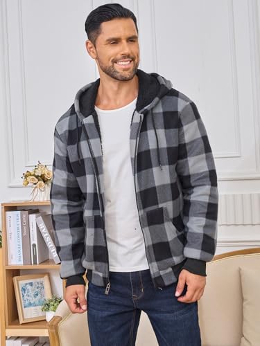 Hoodies for Men Full Zip Up Fleece Warm Thick Jackets Heavyweight Sherpa Lined Coat 5