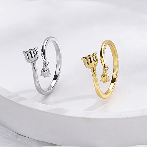 Cute Lily Flower Stacking Wrap Ring for Women Lily of the Valley Floral Dangle Open Adjustable Statement Knuckle Finger Band Promise Eternity Rings Minimalist Jewelry Gifts Birthday 4