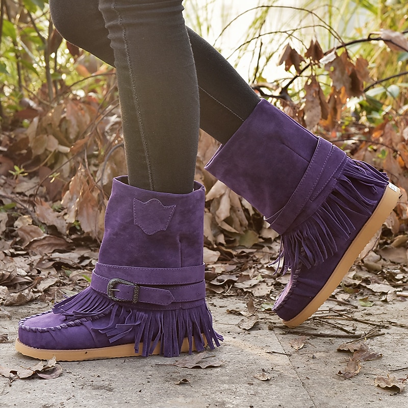 More information about Women's Fringe Suede Moccasin Boots with Buckle Detail - Casual and Comfortable Western Style Ankle Boots