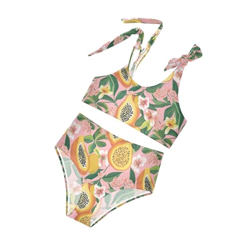 Wusikd Papaya Floral Girls Swimsuits Two Piece Leaves Tropical Swimwear Bikini Set for for Girls Size 3T 4