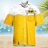 More information about Men's Funny Beer Duck Cuban Collar Shirt Summer Hawaiian Shirt Aloha Shirt Short Sleeve Hawaiian Vacation Holiday Beach Wear Summer Spring Camp Collar Shirt 3D Print Front One Pocket Yellow Orange