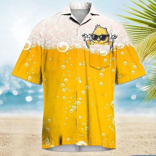 Men's Funny Beer Duck Cuban Collar Shirt Summer Hawaiian Shirt Aloha Shirt Short Sleeve Hawaiian Vacation Holiday Beach Wear Summer Spring Camp Collar Shirt 3D Print Front One Pocket Yellow Orange 7