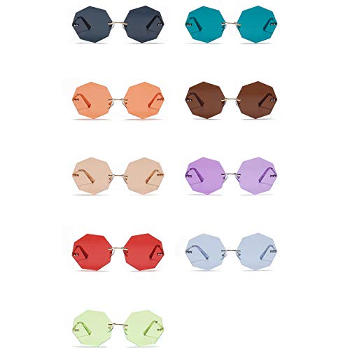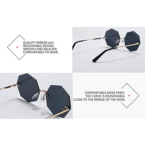 Polygon Rimless Sunglasses For Women Vintage Clear Colorful Lens Sun Glasses Octagonal Metal Sungshades For Men