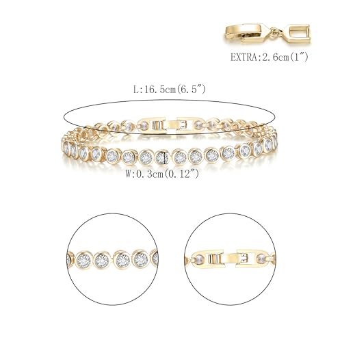 • SIZE: Gold tennis bracelets Length is 16.5cm(6.5")-19.1cm(7.5"). In addition, we prepare the another clasp to adjust the length conveniently.