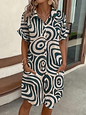 More information about Women's Mini Dress Shirt Dress Casual Dress Print Dress Fashion Modern Daily Beach Weekend Regular Fit Geometric Short Sleeve Shirt Collar Green Summer Spring Fall Autumn