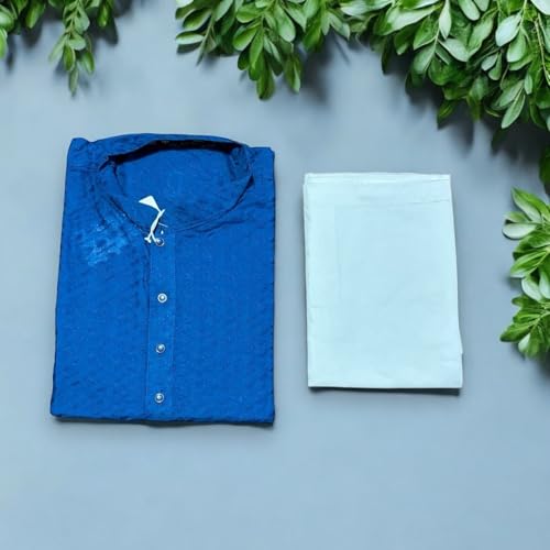 HOT ! Mens Traditional Blue Sequence Kurta Pajama, 6338