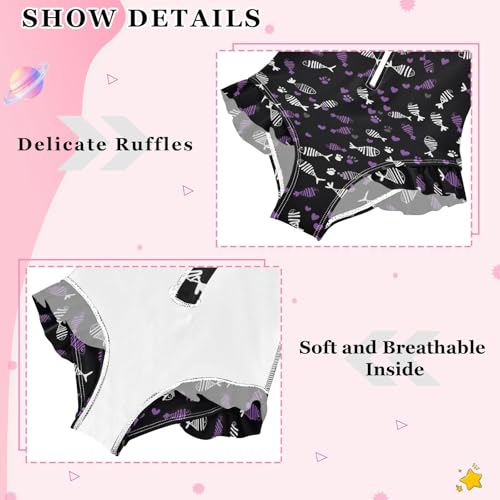 White Purple Fish Bone Pattern Girls Long Sleeve Swimsuit Rash Guard One Piece Bathing Suits Zipper 3-12T 4