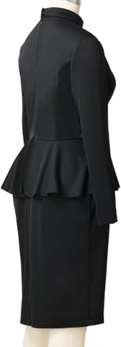 FAD-4U Church Clergy Dress for Women Minister Long Sleeve Ruffle Slim Pencil Dress with Tab Insert Stand Collar 2