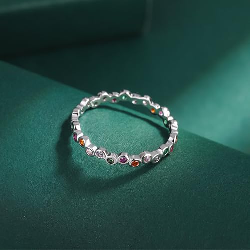 925 Sterling Silver Rainbow Birthstone Eternity Rings for Women Dainty Colorful Simulated Diamond CZ Stackable Ring Wedding Bands Ring Jewelry Christmas Birthday Gifts to Daughter 5