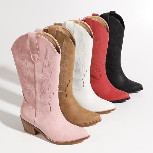 • 【Trendy Western Design】These cowgirl boots are crafted with timeless charm and durability,and these pink cowgirl boots feature a pointed toe, classic Embroidery and smooth synthetic leather upper, allowing these light pink cowgirl boots women fashion and comfy.