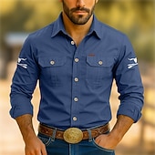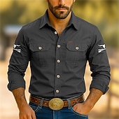 More information about Men's Work Shirt Western Shirt Cargo Shirt Black Army Green Dark Blue Long Sleeve Cow Print Turndown Sports Outdoor Casual Clothing Apparel Casual Tactical