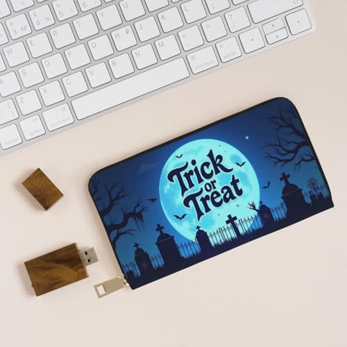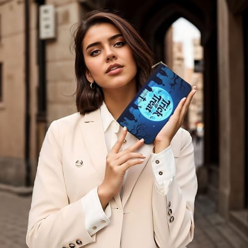 Wallet Women - Gothic Blue Graveyard Print Leather Wallet for Women with Zipper, Cute Bifold Long Ladies Wallets