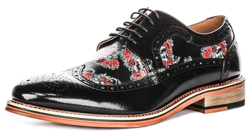 More information about Ross Skull Men's Skull Rose Print Brougue Low Shoes (Black Multi, US 10)