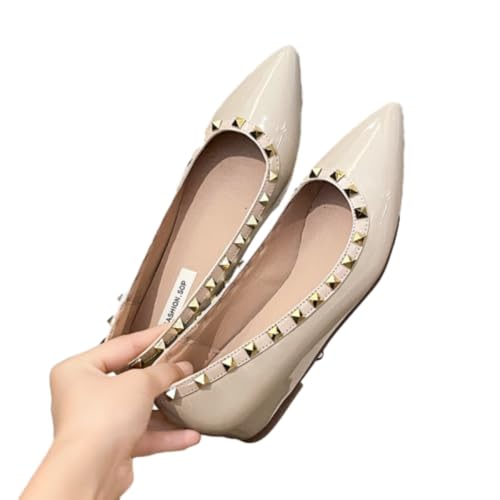 • 【Premium Quality Material】: This mary jane shoes is made of high-quality leather, Pointed closed toe and sparkling rivet decoration, elegant and fashionable.the rubber sole is durable and prevents slipping. this women's shoe will not feel uncomfortable even if worn for a long time