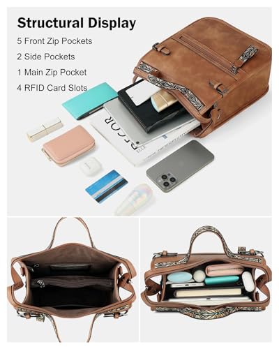 • Compact Space:This crossbody purse for women features a total of 6 pockets: 1 front zip pocket, 1 back anti-theft zip pocket, and 1 main compartment with a zip pocket in the middle that divides it into 2 spaces. With dimensions of 9"W x 4"D x 10.2"H and a lightweight 2lb design, this tote bag for women is ideal for all-day use