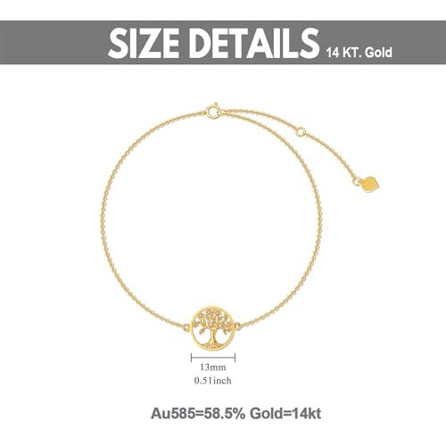 • 【Material】: Made of high-quality 14K real gold, with 58.5% gold content, not easy to fade and deform, and has good gloss. This solid gold tree of life bracelet features a highly polished finish, is nickel-free, lead-free, and is comfortable to wear and suitable for sensitive individuals.