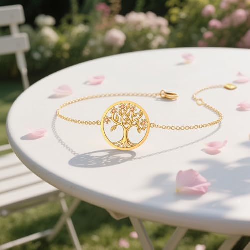 • 【Unique design】:The tree of life symbolizes endless life, strength and tenacious vitality. This 14K gold family tree bracelet contains 5 blooming flowers, which means that no matter what difficulties you face, you will always stay energetic and strong. Wearing this 14K gold pendant bracelet exudes elegance and is a surprise gift for every woman.