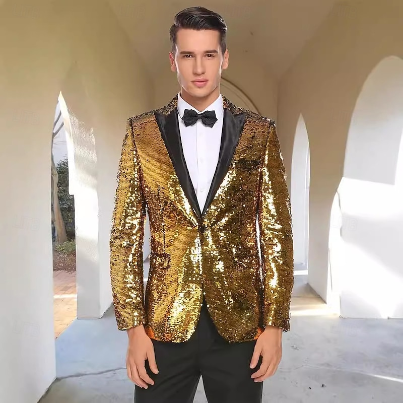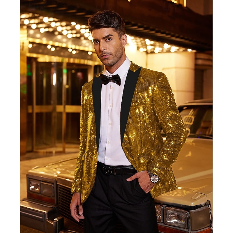 HOT ! Retro Vintage 1980s Shiny Metallic Tuxedo Suits & Blazers Disco Sequins Fancy Dress Men's Carnival Costume Christmas Halloween Carnival Cocktail Party Theme Party Pride Parade Adults' Coat