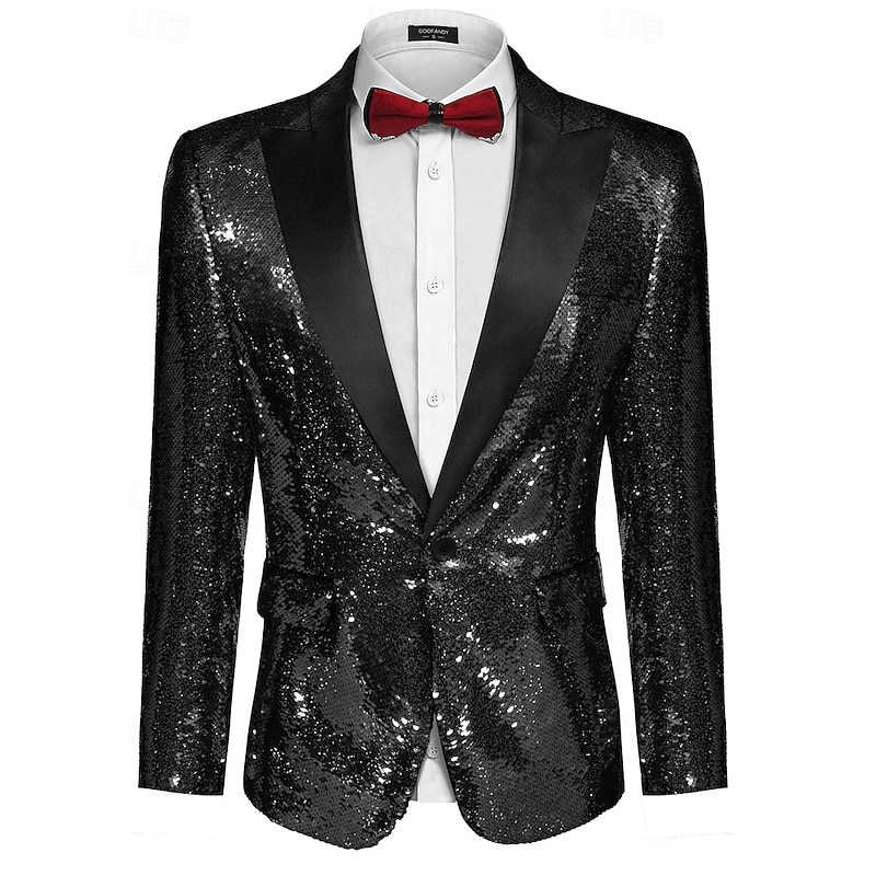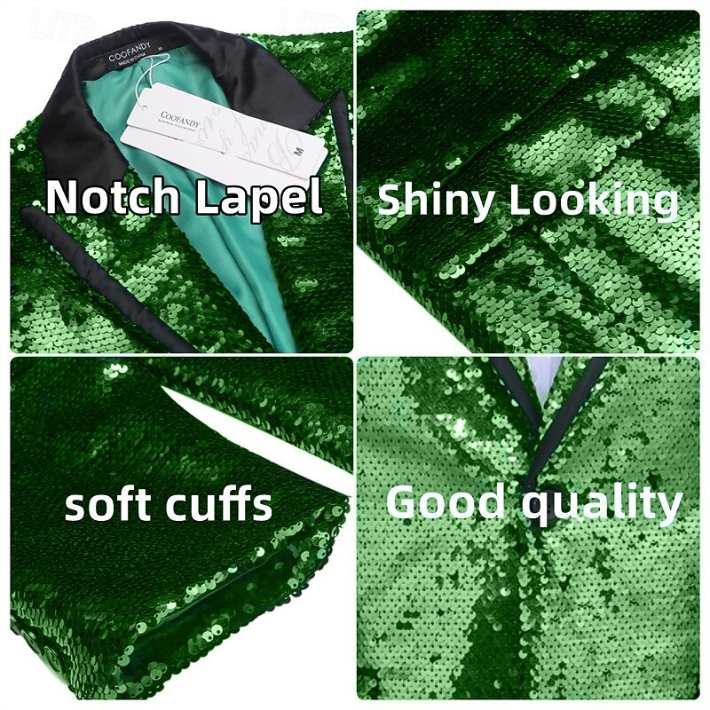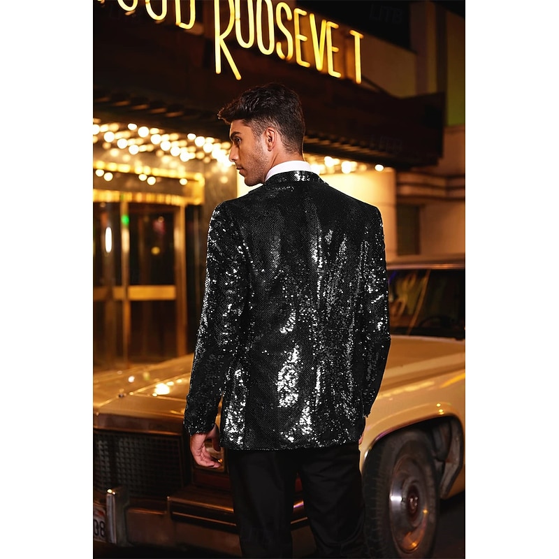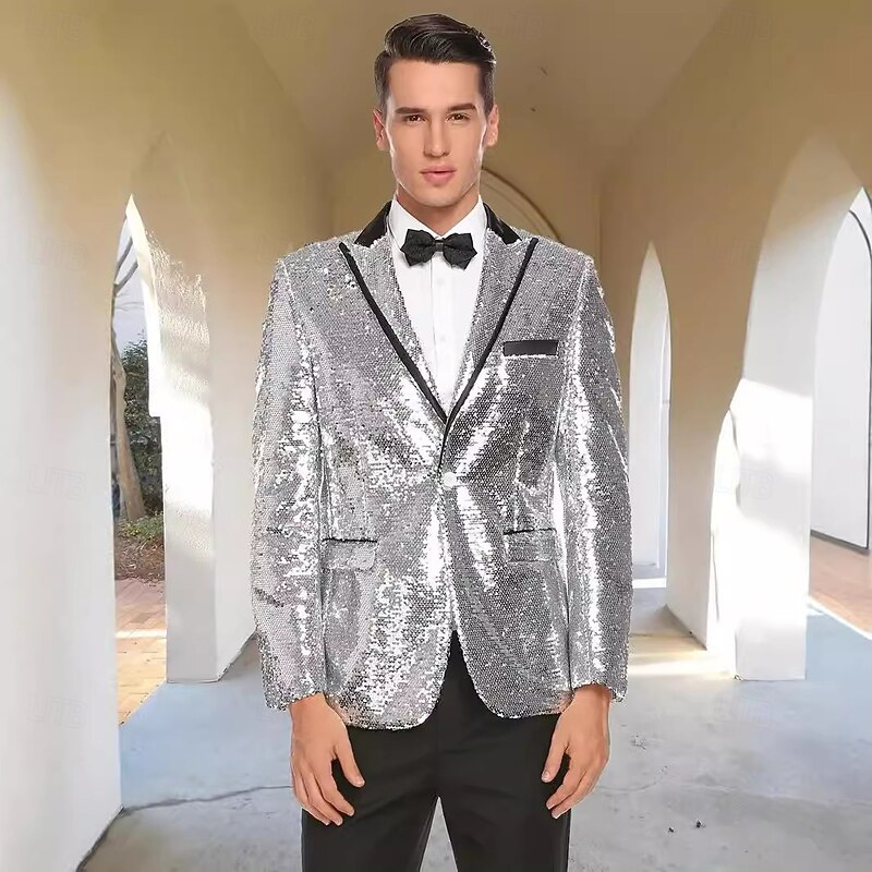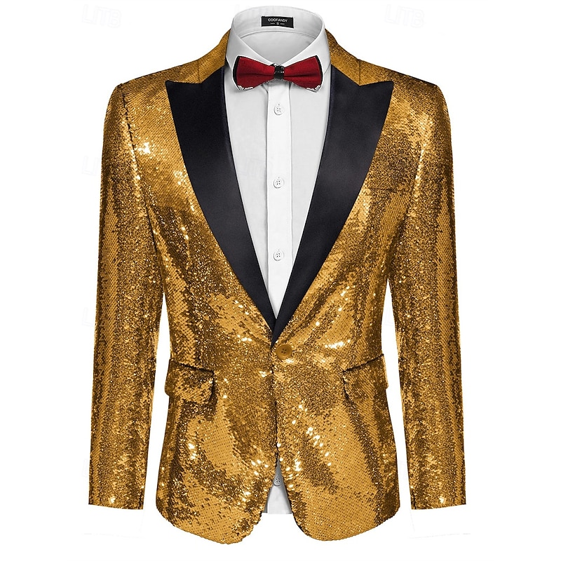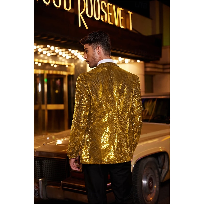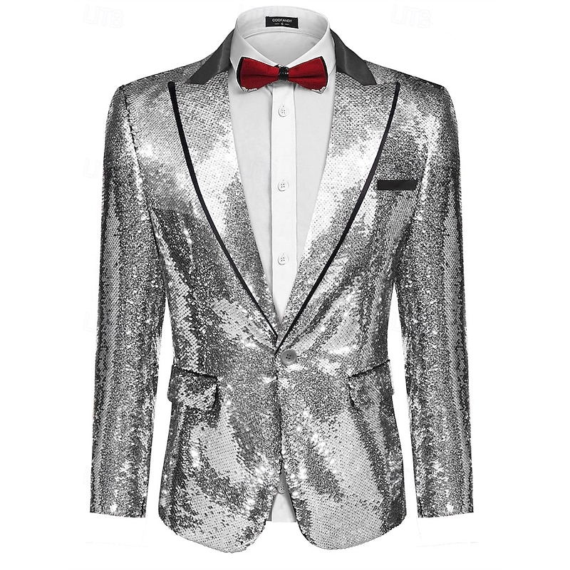 More information about Retro Vintage 1980s Shiny Metallic Tuxedo Suits & Blazers Disco Sequins Fancy Dress Men's Carnival Costume Christmas Halloween Carnival Cocktail Party Theme Party Pride Parade Adults' Coat
