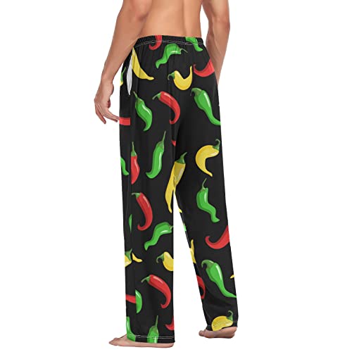 Yellow Red Hot Chili Peppers Pajama Pants Green Spicy Men's Pajama Bottoms Lounge Sleepwear PJs Lightweight Sleep Pants L 1
