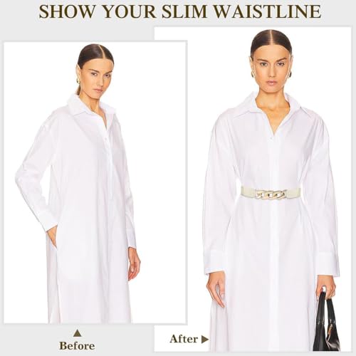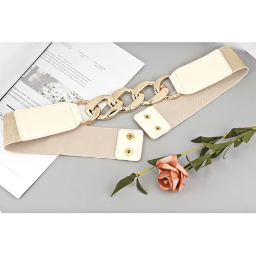 Fabric type: AlloyOrigin: ImportedMaterial: Alloy and elastic.Size: Width: 5cm/2in. Length: 65cm/26in, fits waist 65-70cm/26-28in. Length: 70cm/28in, fits waist 70-75cm/28-30in. Length: 75cm/30in, fits waist 75-80cm/30-32in. Length: 80cm/32in, fit waist 80-85cm/32-34in. Length: 85cm/34in, fit waist 85-95cm/34-37in. Length: 95cm/37in, fit waist 95-105cm/37-41in.Multiple Occasions: Our women's belt, suitable for jackets, sweaters and dresses, you will get lots of compliments in this belt! Whether you're preparing for a busy day at the office, a fun night out at the club, a casual gathering with friends, or a romantic date, wear it.Design: This elastic belt is made of soft fabric with good elasticity, which can fit well into your waist line and enhance the wearing effect. The back button design is easy to put on and take off, bringing you a comfortable wearing experience.Easy to Wear: contemporary and unique style belts are suitable for dresses, tunics, skirts, sweaters, down jackets, jumpsuits, cardigans, etc. Whether dressed formally or casually, it can be well matched with your outfit. Perfect for everyday use. supreme materials and excellent craftsmanship ensure long-lasting durability.