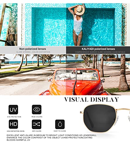 HOT ! KALIYADI Sunglasses for Women and Men, Polarized Square UV Protection, Trendy Metal Frame Hexagon Sunglasses
