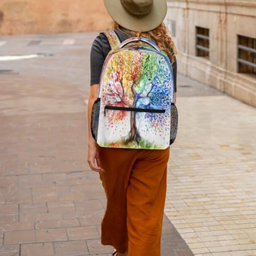 Watercolor Painting Tree Colorful Backpack Laptop Backpacks Casual College Travel Bag Hiking Daypack for Women Men 4