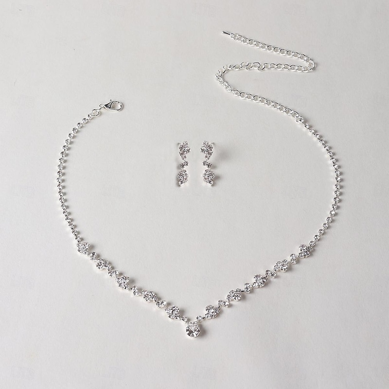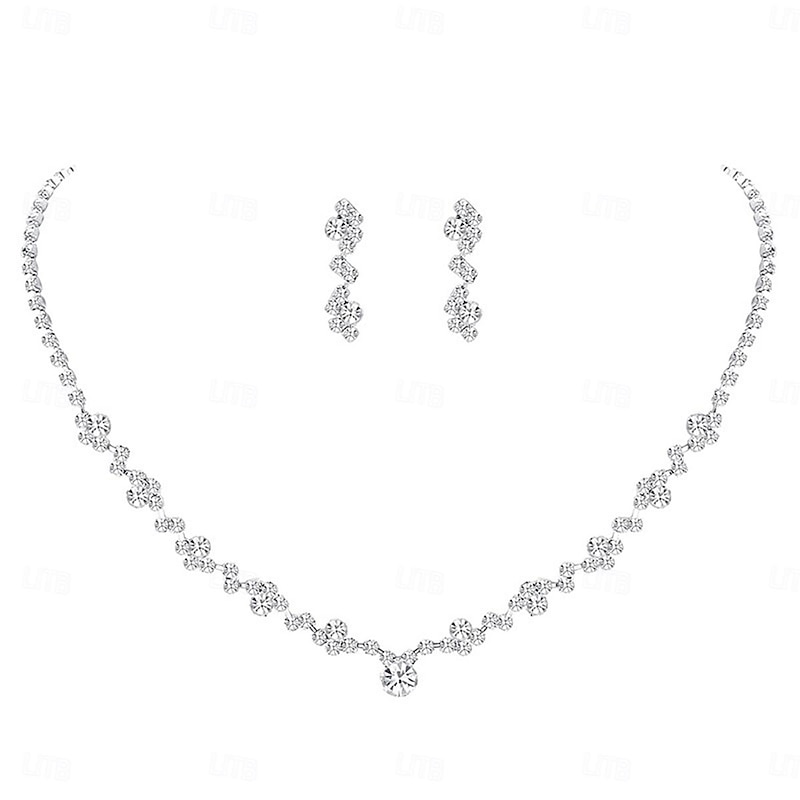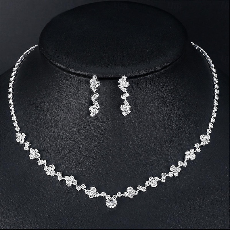 Highlights [Fabric] This women’s jewelry set is crafted from high-quality alloy, ensuring durability while maintaining a luxurious appearance. The silver metal base serves as an elegant backdrop for the dazzling crystals, which are precision-cut to maximize their sparkle and brilliance. [Design Highlights] The necklace features an intricate floral pattern crafted from interlinked crystals, creating a timeless yet modern aesthetic. The matching earrings boast a cascading design that moves gracefully, catching the light to enhance their enchanting effect. This jewelry set is available in both gold and silver tones, offering versatility and sophistication. [Occasions] Suitable for a variety of occasions, this jewelry set can elevate your look for dates, street outings, daily wear, or visits to the park. Its romantic and elegant design makes it perfect for accessorizing any outfit, whether casual or formal, adding a touch of glamour. [Size] The set is available in a universal size, designed to comfortably fit and complement any adult wearer. The timeless style ensures it remains a staple in your accessory collection throughout the seasons—spring, summer, fall, and winter.