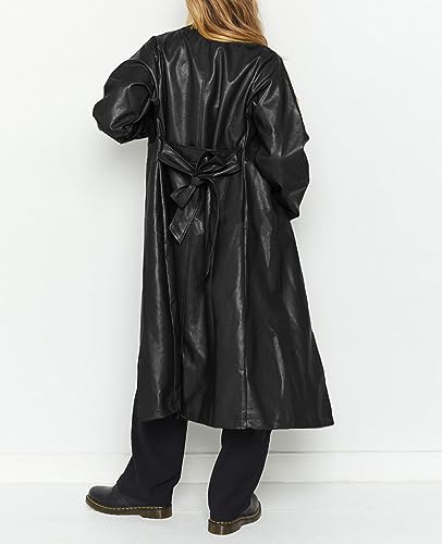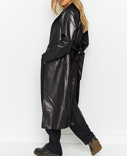 More information about Women's Casual PU Leather Long Jacket Lapel Open Front Trench Coat with Belt