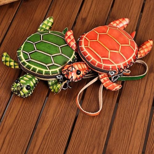 HOT ! Cute Mini Animal Wallet for Kids & Students, Handmade Leather Turtle Coin Purse, Small Cowhide Change Pouch, Cartoon Zipper Coin Bag