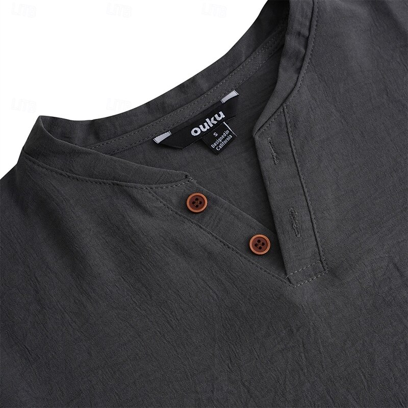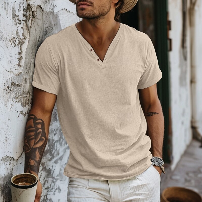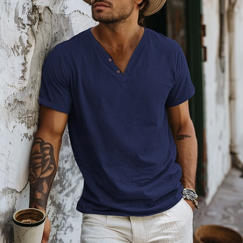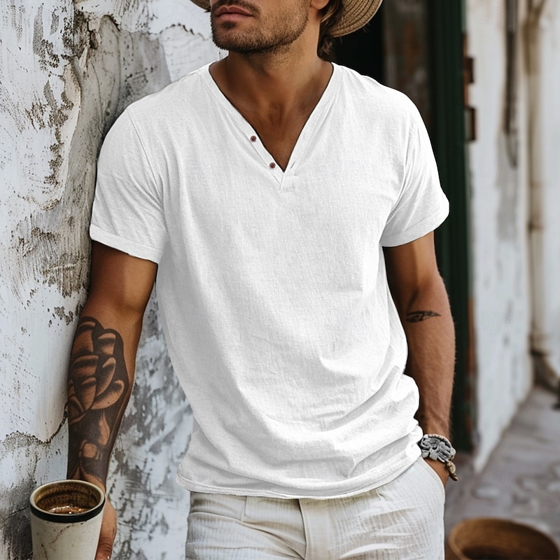 More information about Men's Henley Shirt Tee Top Short Sleeves Plain Fashion Designer Basic V Neck V Neck Vacation Street Going out Summer Light Blue Black White Henley T-Shirt