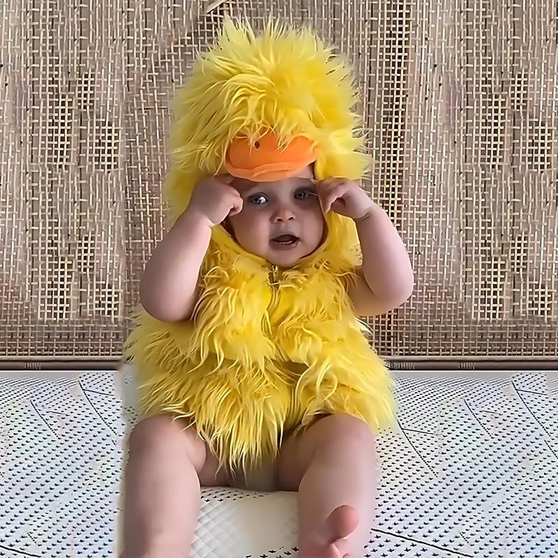 Highlights [Fabric] Made from a soft, plush fabric, this adorable duck-themed baby costume offers warmth and comfort. The exterior features fluffy faux fur, perfect for keeping your little one cozy during costume parties or themed photo shoots. [Fit] The costume is designed in a sleeveless romper style, allowing for easy movement. Its inelastic nature ensures a snug yet comfortable fit, suitable for various activities and performances. [Design Highlights] This charming costume includes a cute hood with a duck beak and eyes, adding to its whimsical charm. The front zipper closure facilitates quick and simple dressing, enhancing convenience for parents and excitement for children. [Occasions] Perfect for performances, Halloween masquerades, and other festive events. This vibrant and delightful outfit is sure to make your child the center of attention, embodying the playful spirit of any celebration. [Sizing] Available in sizes to fit children aged 1-2 years (90 cm), 2-3 years (100 cm), 3-4 years (110 cm), and 4-5 years (120 cm), catering to a wide age range.