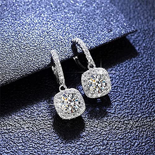 HOT ! Classic Cubic Zirconia Dangle Hoop Earrings for Women Girls 18K White Gold Plated Princess Cut Square Halo CZ Charms Drop Dangling Leverback Stud Dainty Birthday Wedding Anniversary Jewelry Gifts