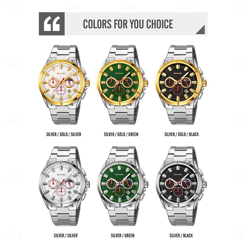 $31.99 - SKMEI Men Quartz Watch Fashion Business Wristwatch Moon phase Luminous Stopwatch Calendar Steel Watch 2025. Shop for cheap Quartz Watches online? Buy at lightinthebox.com on sale today!