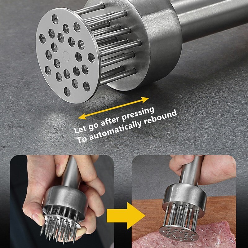 HOT ! 304 Stainless Steel Loose Meat Needle Meat Tenderizer Household Quick Insert Beef Artifact Loose Meat Hammer Steak Kitchen Tool