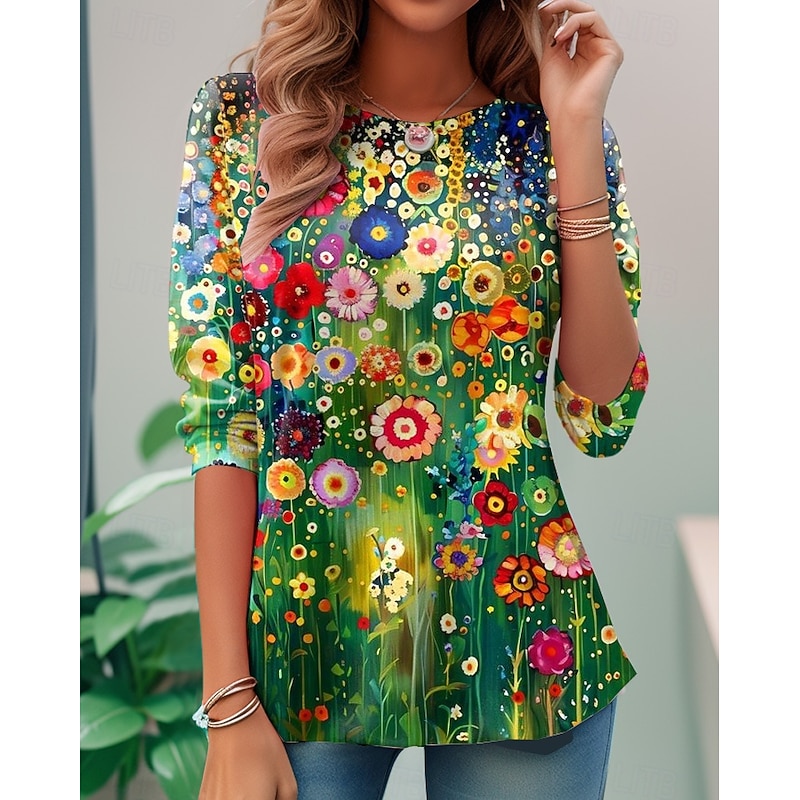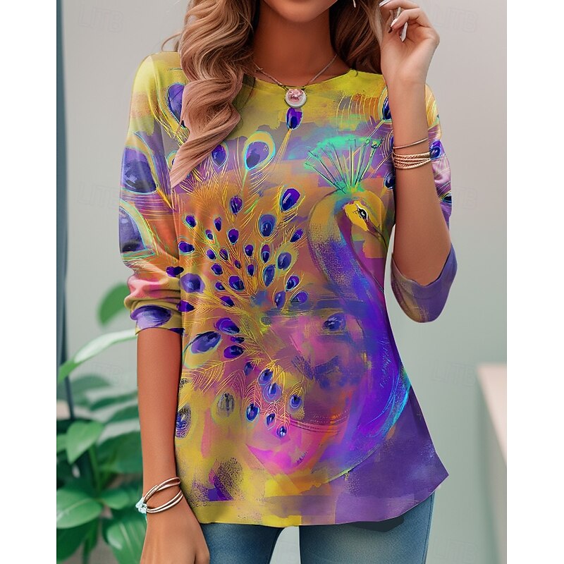 More information about Women's T shirt Long Sleeve Crew Neck Long Sleeve Tunic Casual Print Regular Tops Daily Rainbow Spring Fall Prefall