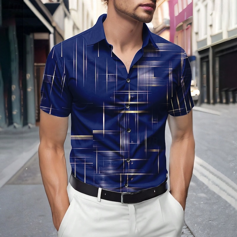 More information about Men's Geometric Gradient Line Shirt Summer Shirt Button Up Shirt Short Sleeve Fashion Casual Outdoor Vacation Dailywear Summer Spring Turndown 3D Print Collared Shirts Black Pink Blue Dark Blue Gray