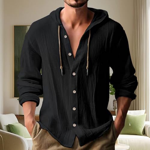 Fabric type: Cotton linenCare instructions: Machine WashOrigin: ImportedClosure type: Button【PREMIUM FABRIC】The linen shirts for men is made of exquisite and soft linen fabric, comfortable and breathable, lightweight and skin-friendly, providing you a cool and relaxed feeling all the time. Perfectly suitable for all seasons.【Features】:Drawstring Closure, Adjustable Sleeves, Fashionable Hood, Solid Color, Lace Up, Mens Hoodies Pullover, Fashion Men's Shirts, Casual and sophisticated.【MATCH】The mens linen shirts long sleeve hippie hoodies perfectly match with casual pants or shorts, chinos or jeans for a casual daily look. You can wear it alone in hot weather or match with t-shirts, coat or jacket when cooling down.【OCCASION】The mens button up shirts long sleeve tropical shirts are suitable for date, wedding, beach, pool, fishing, cruises, sports, yoga, travel, holiday, nights out, club, island, travel, party and casual daily wear. It is a perfect gifts for your boyfriend, son, husband, or even yourself.【Garment Care】- Machine washable and hand washable. Machine wash cold, hang dry for best long-term care or dry low heat. If you have any questions about our products, please feel free to contact us, we will give you the satisfactory reply. Perfect for everyday use. first-class materials and excellent craftsmanship ensure long-lasting durability.