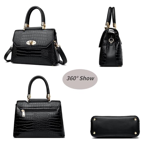 Xehuro Satchel Bag Handbag Top Handle Bag with Crocodile Pattern Shoulder Bag Briefcase for Women 3