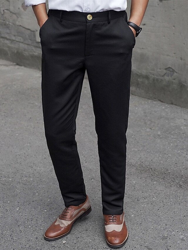 More information about Men's Dress Pants Fleece Pants Trousers Chinos Slacks Pocket Buttons Plain Comfort Formal Party Work Fashion Classic Style Black Micro-elastic